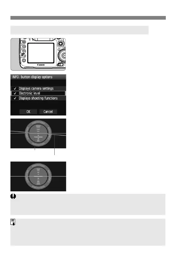 The electronic level can also be displayed during Live View shooting and