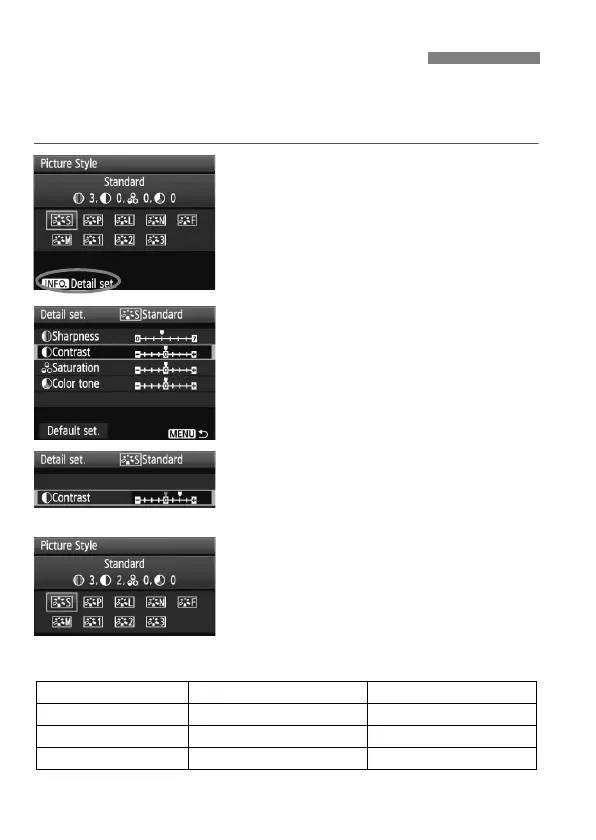 like [Sharpness] and [Contrast]. To see the resulting effects, take test