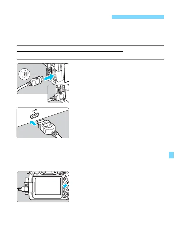 By connecting the camera to a TV set with an HDMI cable, you can play
