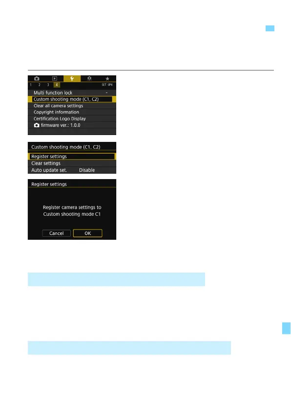 You can register current camera settings, such as the shooting mode,
