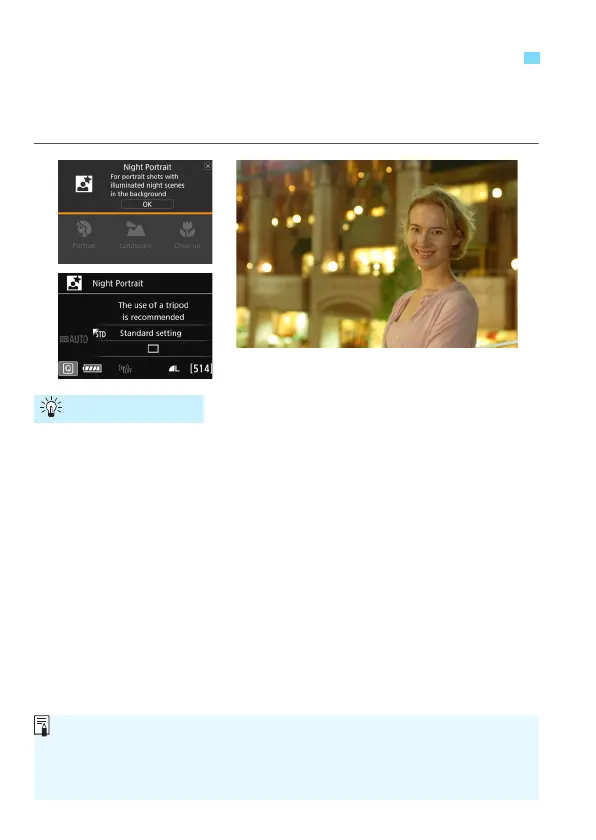 > (Night Portrait) mode. Using a tripod is