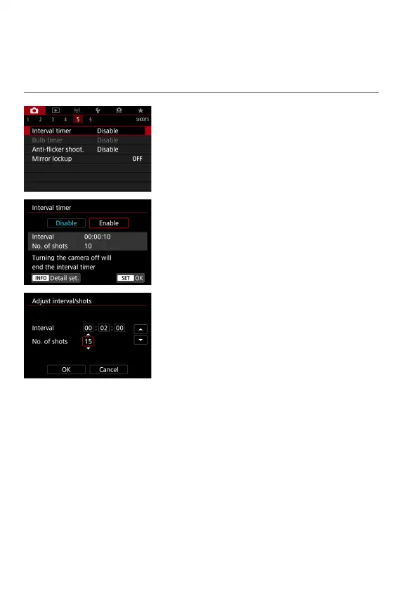 With the interval timer in viewfi nder shooting, you can set the shooting