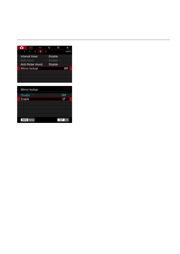 Mirror lockup keeps the mirror up in viewfi nder shooting to reduce blur from