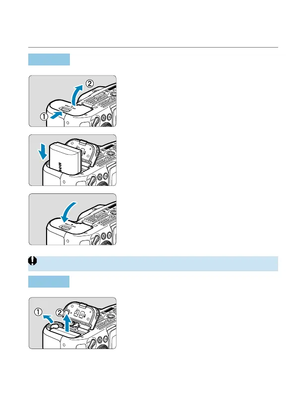 Insert a fully-charged Battery Pack LP-E6N (or LP-E6) into the camera.