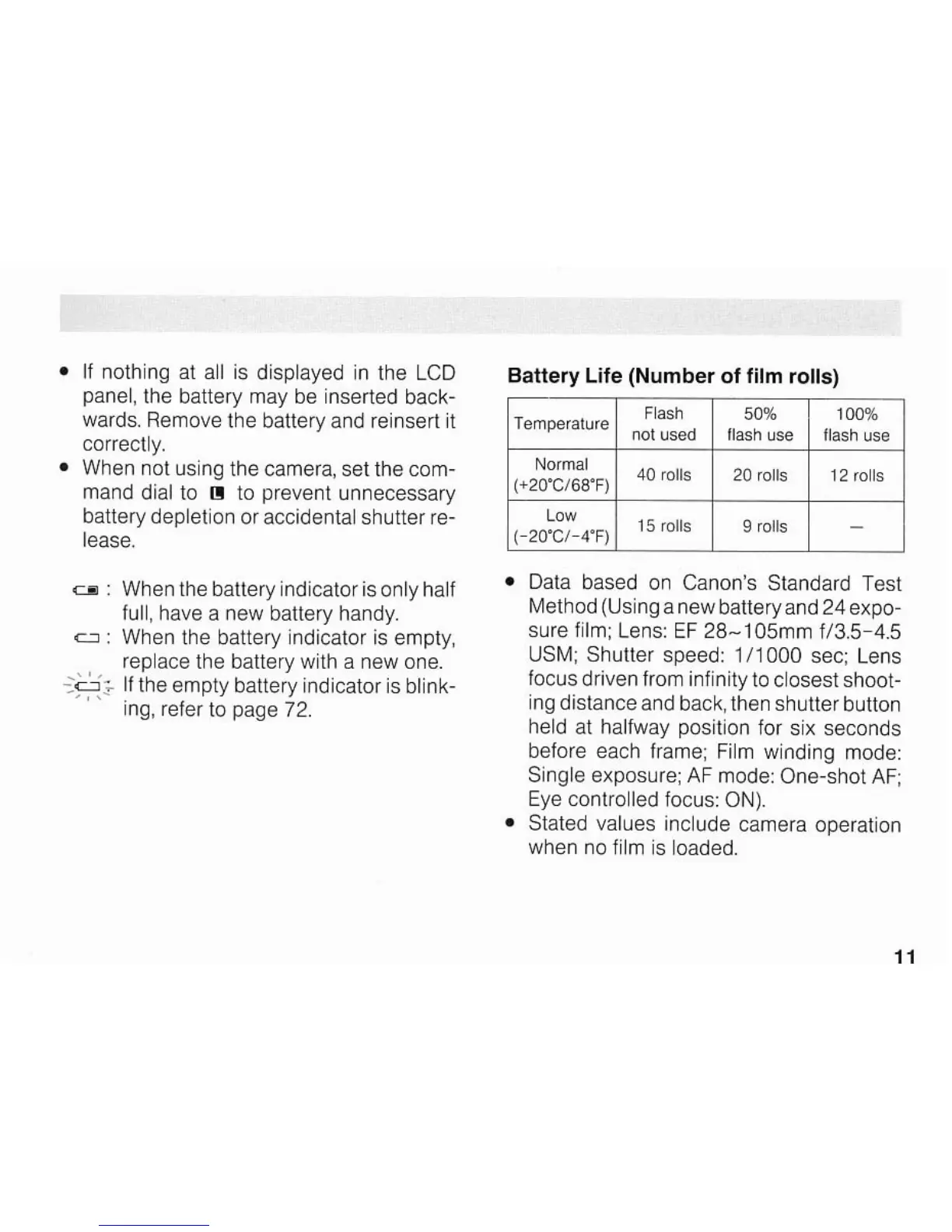 Canon EOS A2/A2E - Battery Management; Battery Indicators and Life