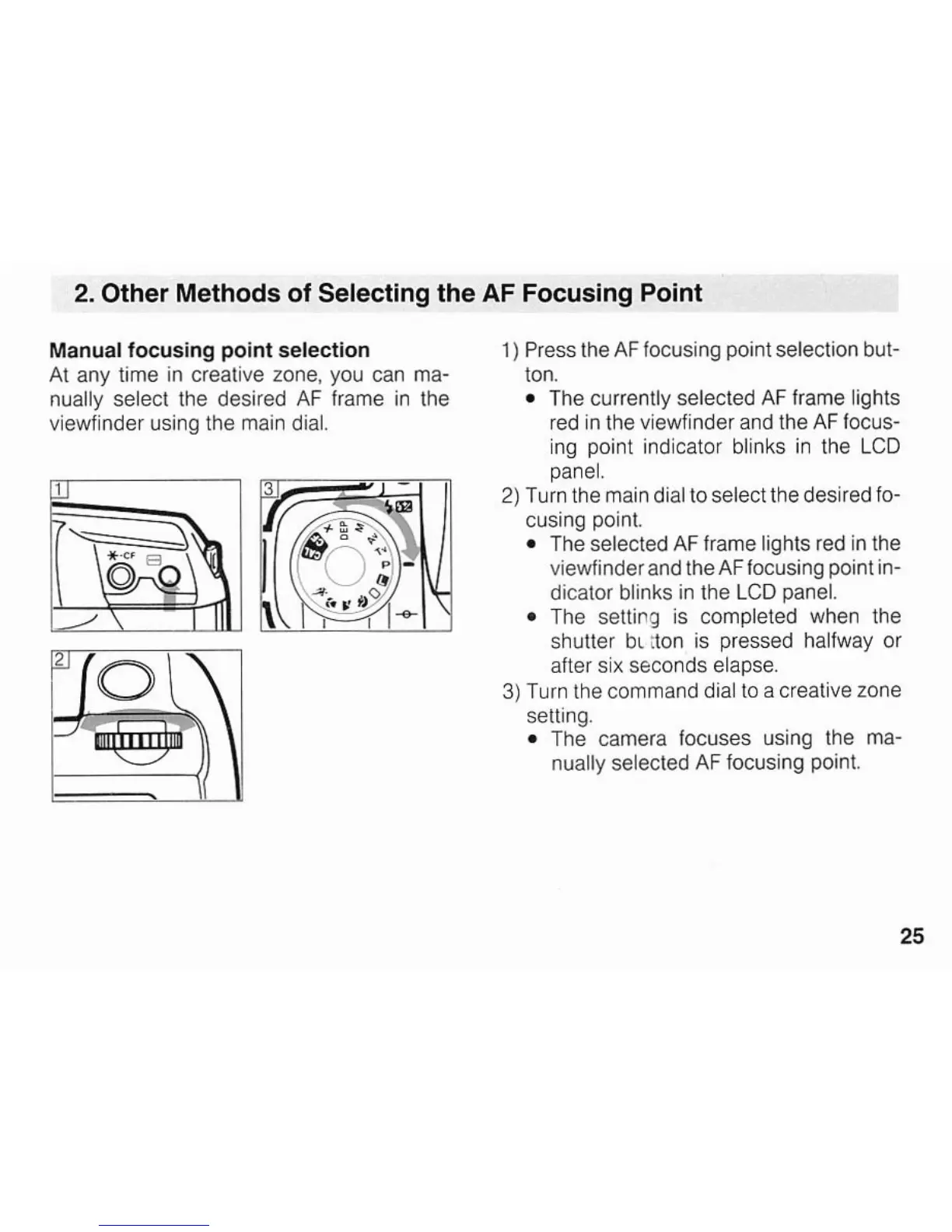 Canon EOS A2/A2E - AF Focusing Point Selection; Manual AF Point Selection
