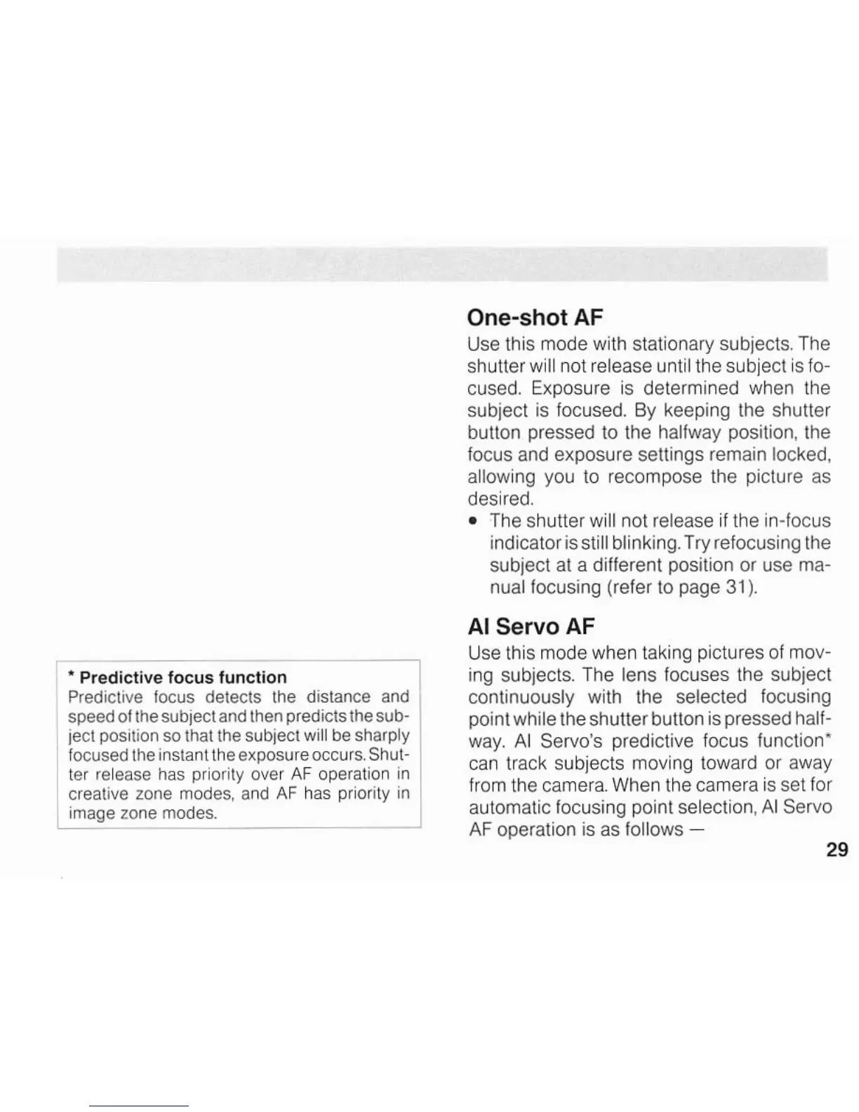 Canon EOS A2/A2E - Autofocus Modes; One-shot AF Mode; AI Servo AF Mode