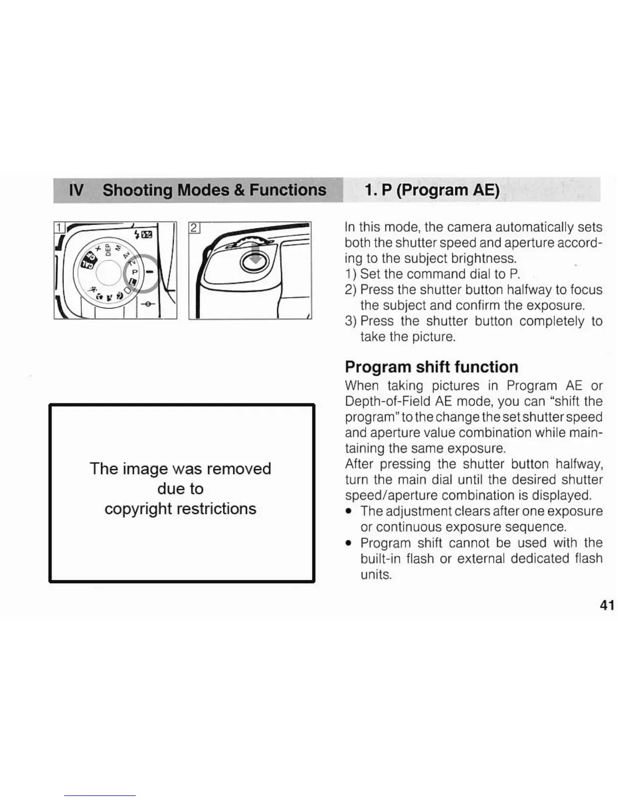 Canon EOS A2/A2E - Shooting Modes and Functions; Program AE Mode; Program Shift Function