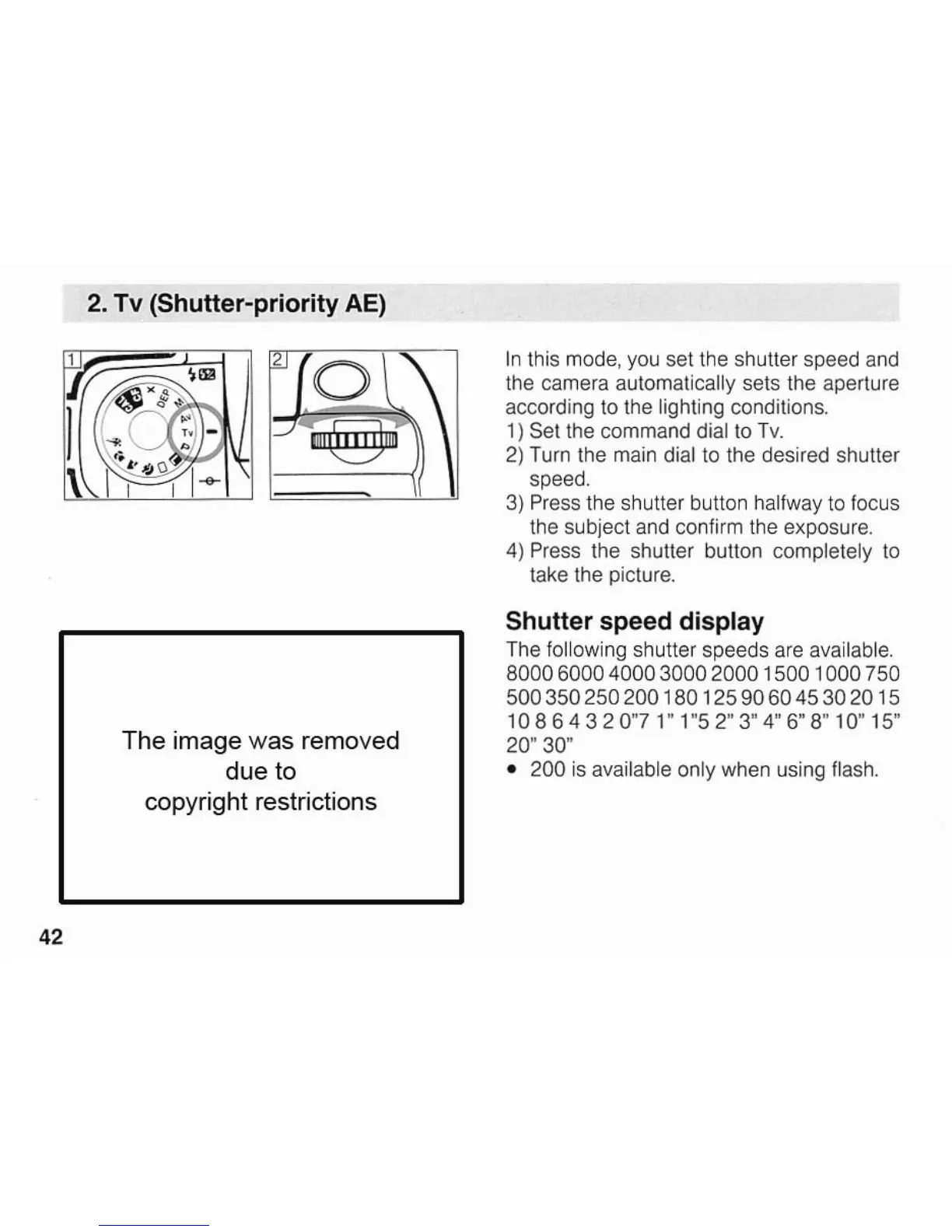 Canon EOS A2/A2E - Tv (Shutter-priority AE) Mode; Using Shutter-priority AE; Available Shutter Speeds