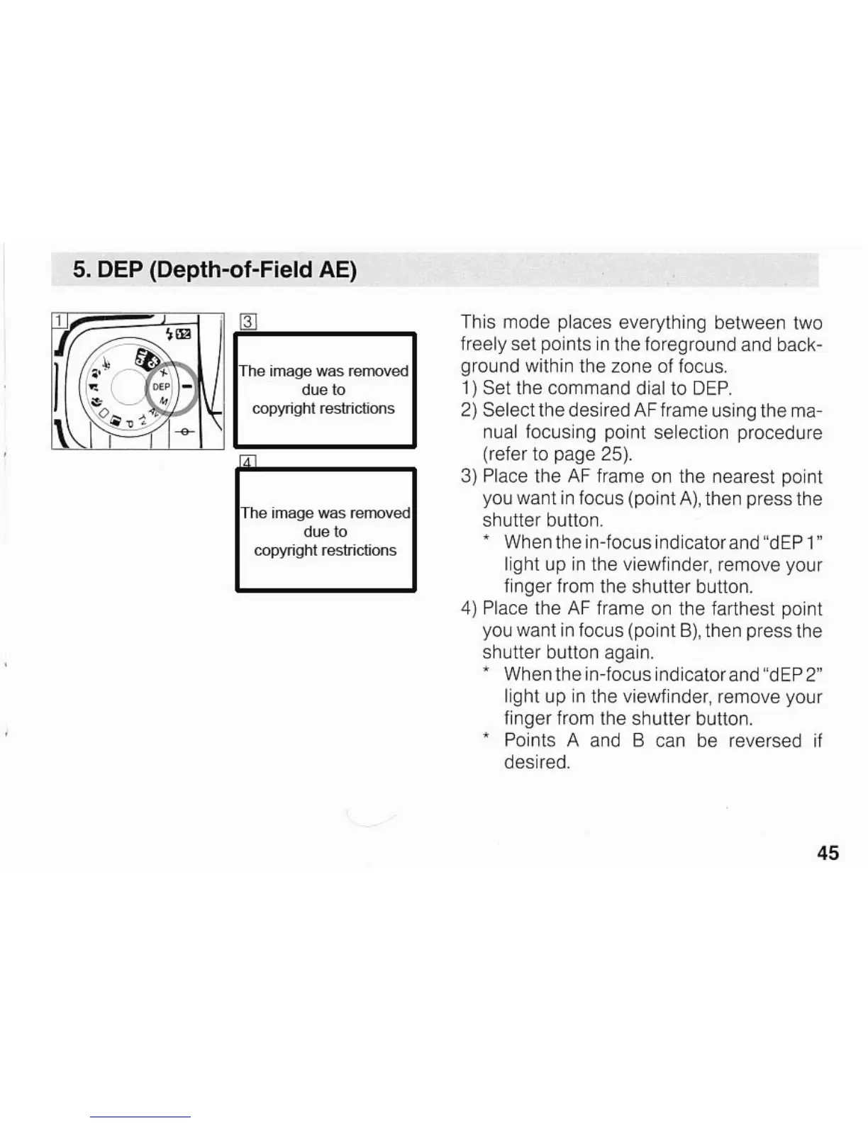 Canon EOS A2/A2E - DEP (Depth-of-Field AE) Mode; Using Depth-of-Field AE; DEP Mode Calibration Steps