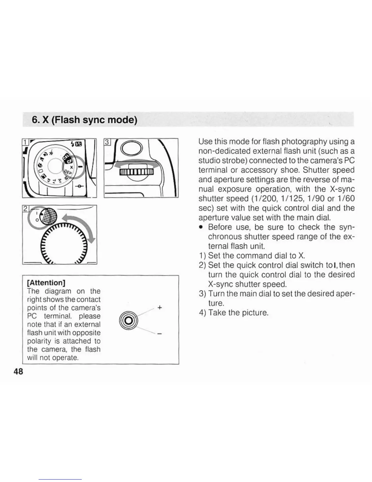 Canon EOS A2/A2E - X (Flash Sync Mode); Using External Flash Sync; PC Terminal Polarity Note