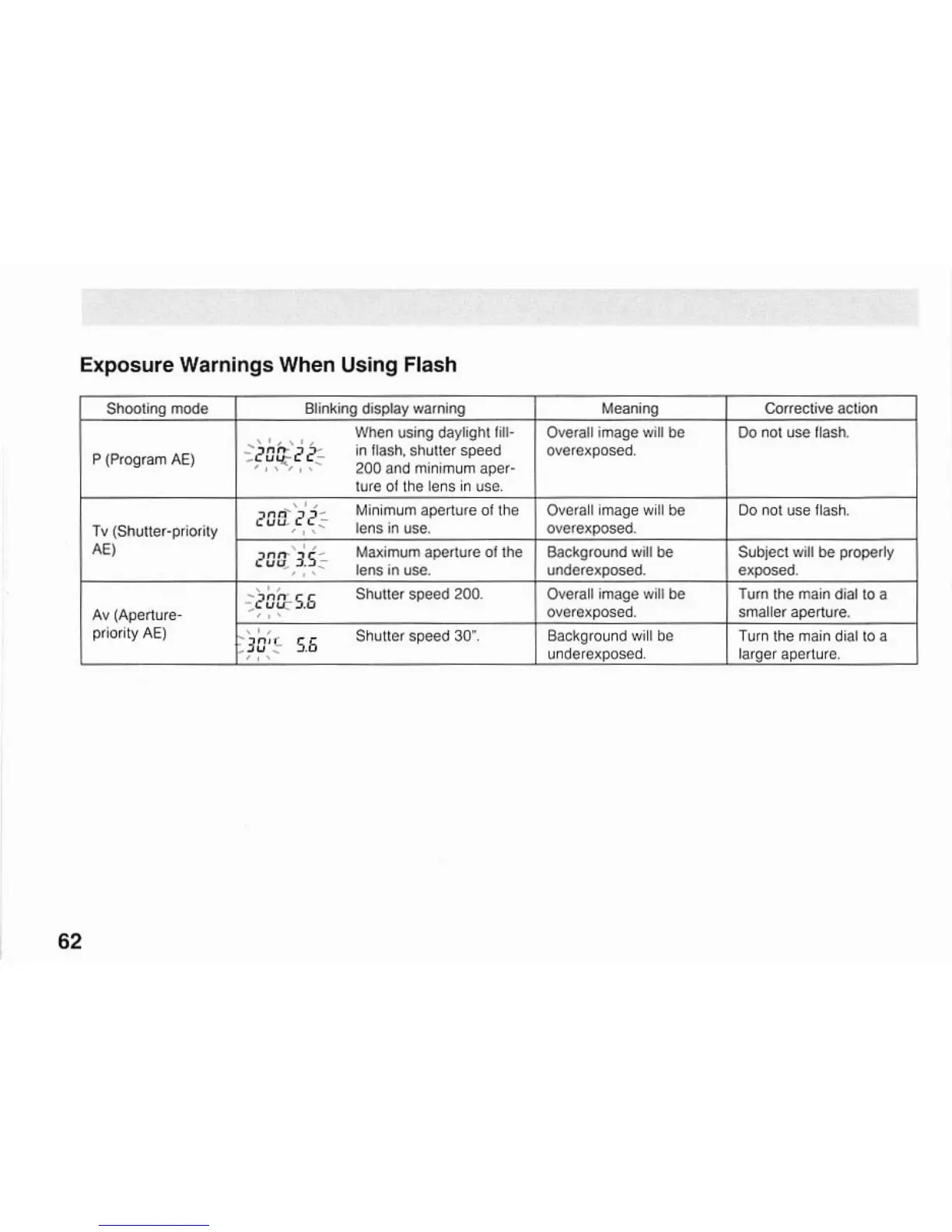 Canon EOS A2/A2E - Flash Exposure Warnings; Warnings When Using Flash