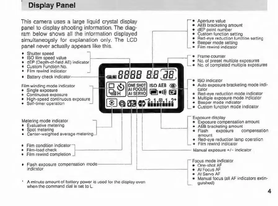 Canon EOS A2 - Display Panel Overview; LCD Information Display