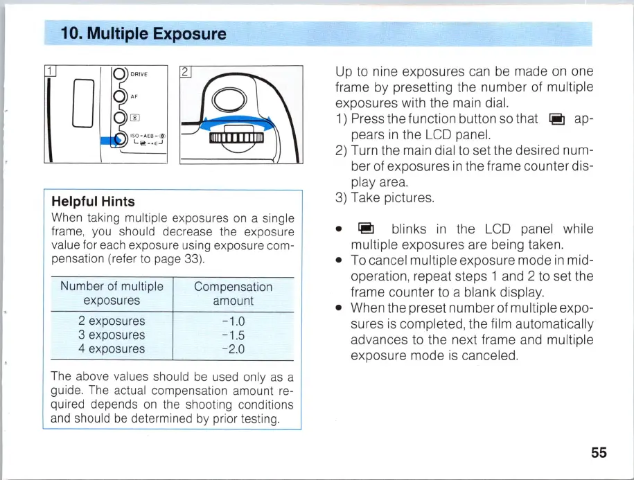 • To cancel multiple exposure mode