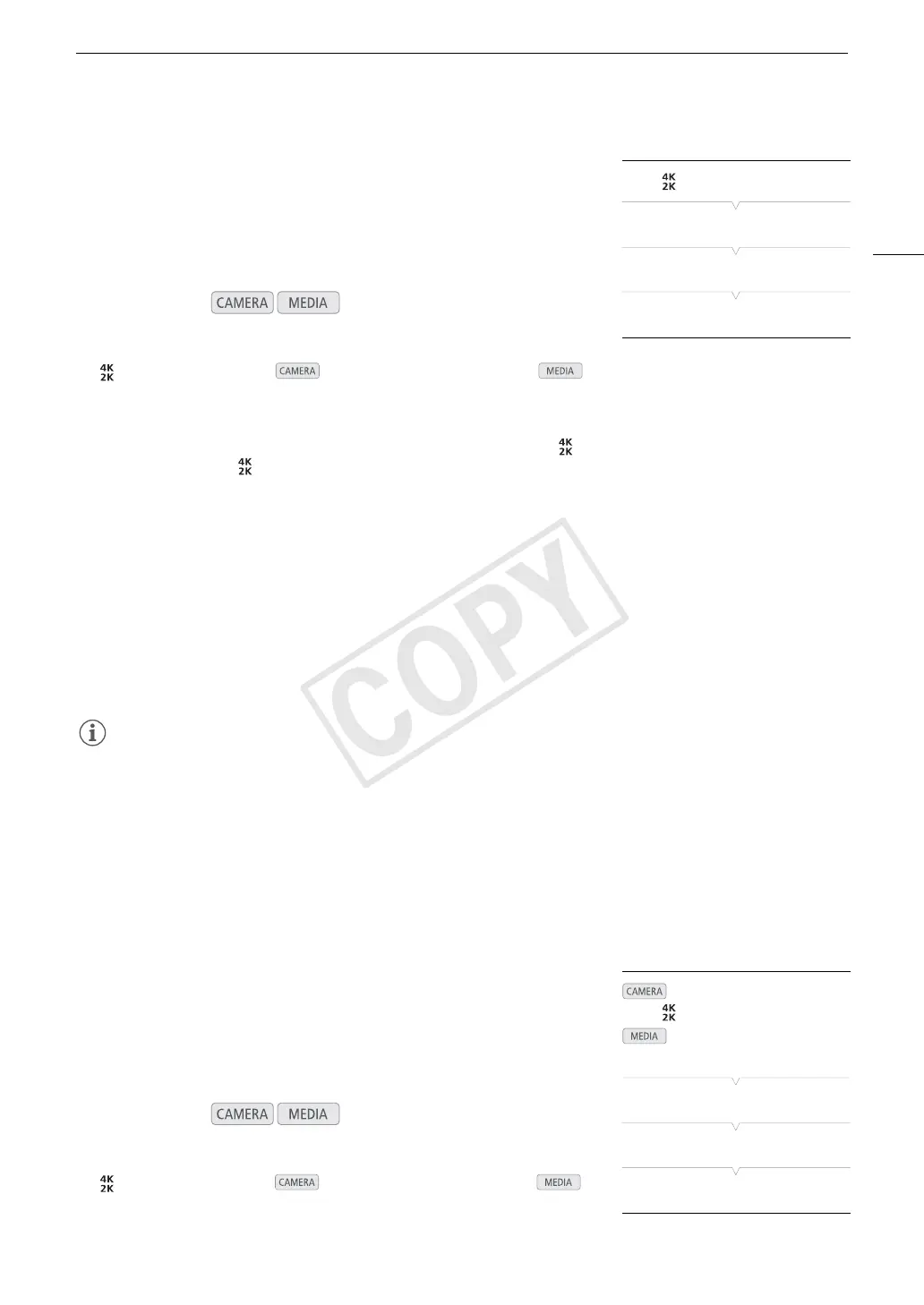 [ 4K/2K/MXF Setup] (in mode) or [¢ Video Setup] (in
