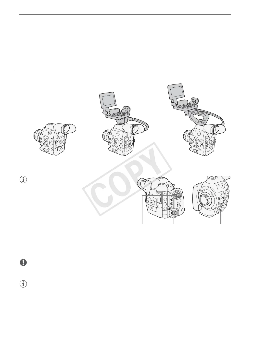 units to the camera: monitor unit, handle unit, eye cup, etc. This section also covers how to adjust the viewfinder