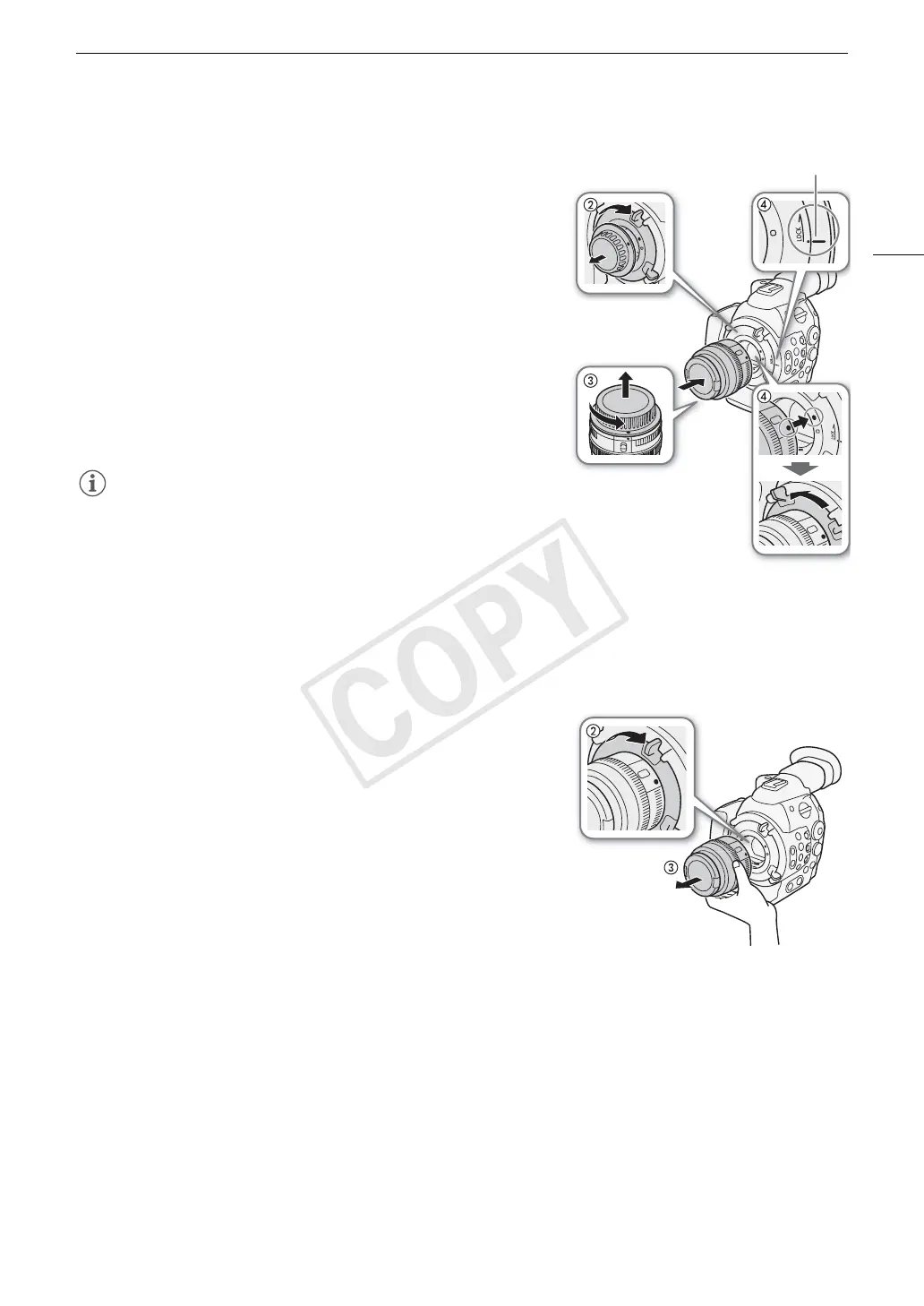 5 After the lens is attached to the camera, without turning the lens,