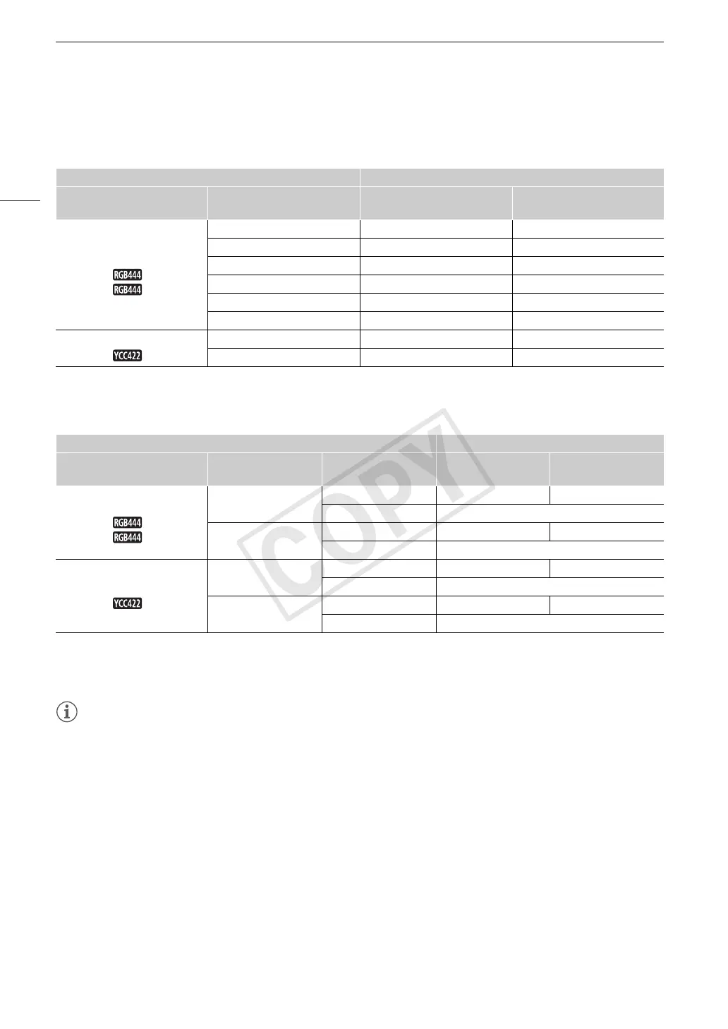 The following summarizes the video signal output from the 3G-SDI terminals for general shooting situations. The