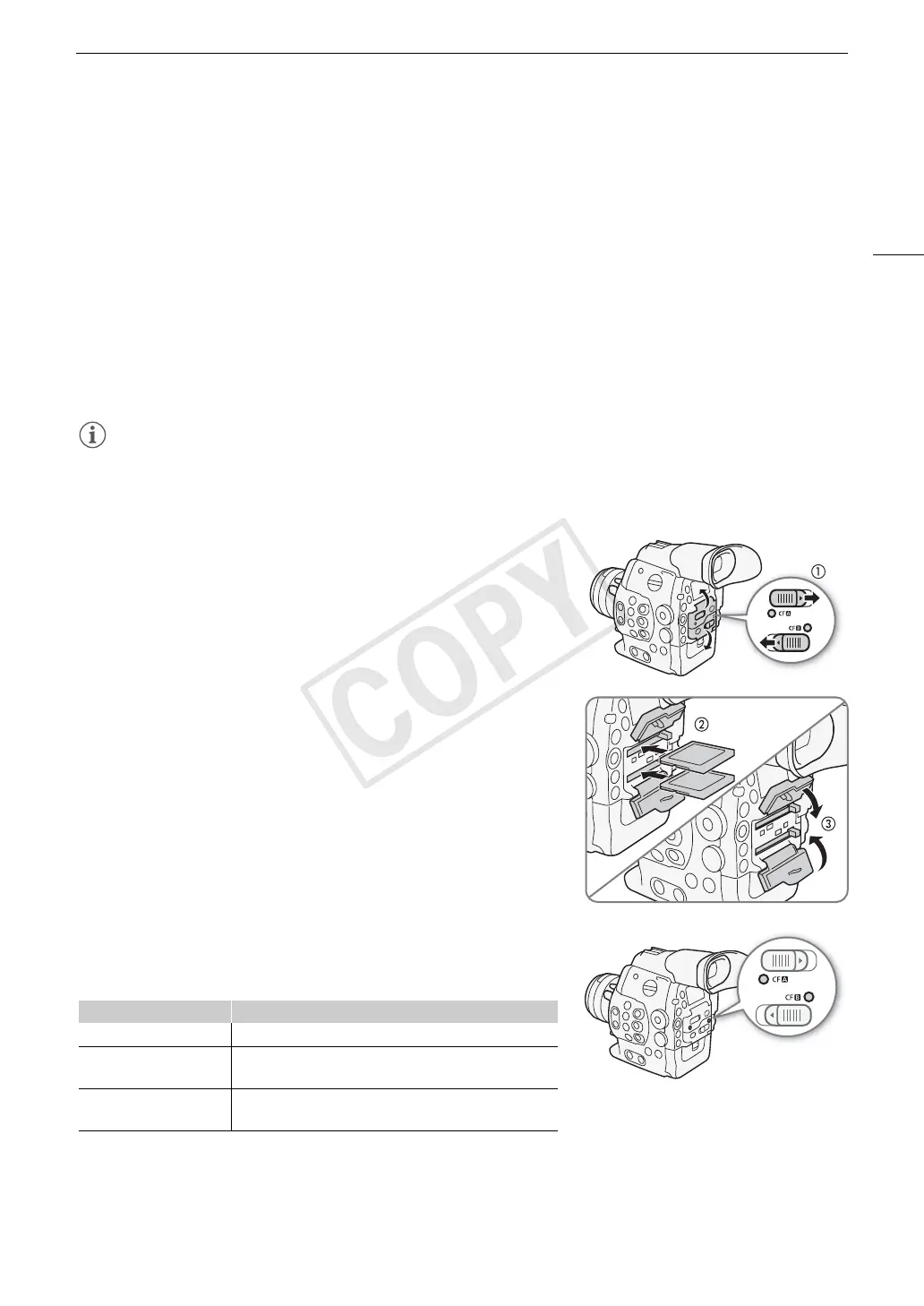 transfer speeds (measured in MB/s). Depending on the CF card, you may not be able to record even when using a UDMA-