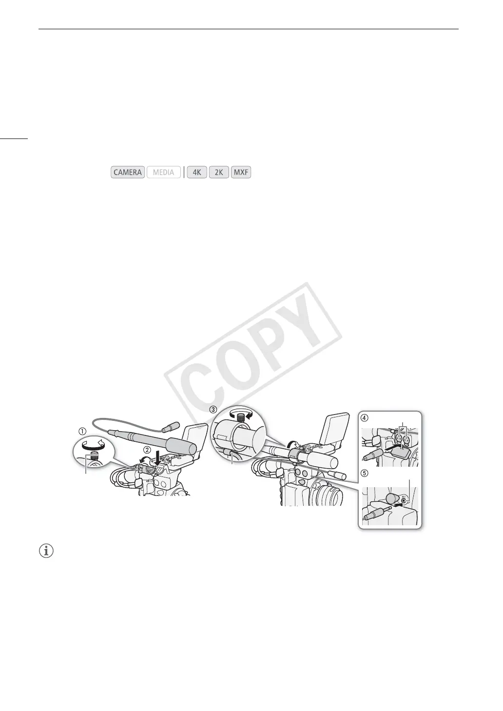 Follow the procedure below to attach a microphone (refer also to the following illustration). To connect an