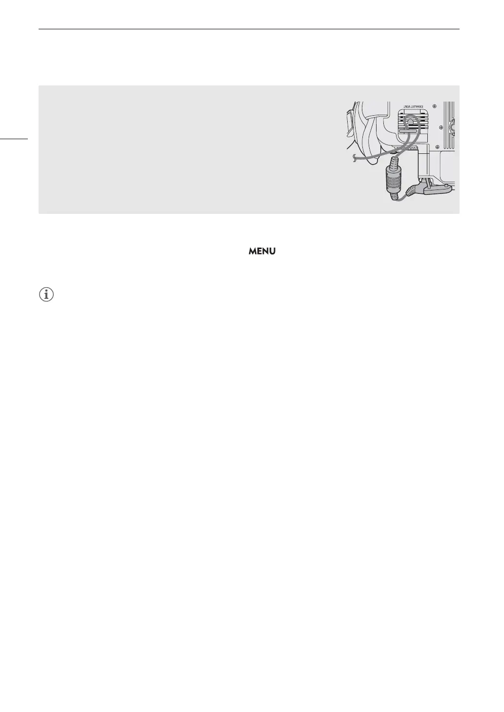 The voltage level appears on the screen (A 43). Select > [B System Setup] > [DC IN Warning (V)] to set