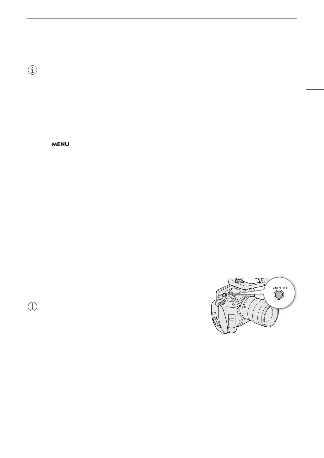 If both slots contain a card, you can switch the card used for recording/playback as necessary.