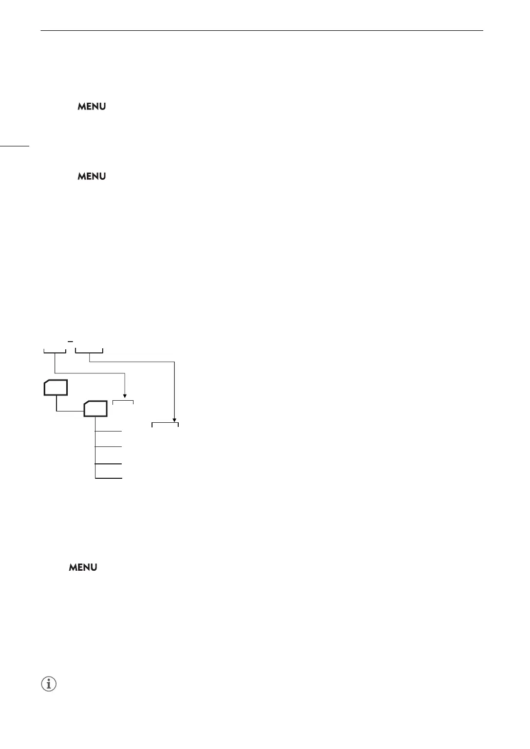 • For double slot recording clips, the folder name and file name will be the same in both SD cards.