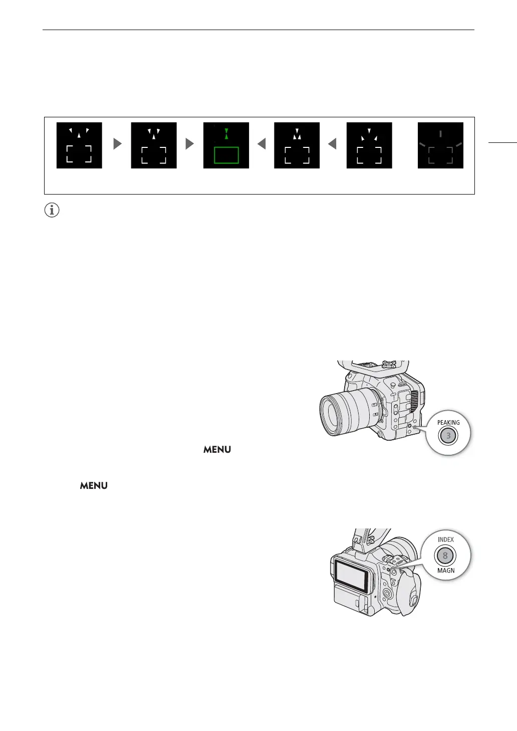 - When a manual focus lens is attached to the camera, except for compatible EF Cinema lenses (A 203).