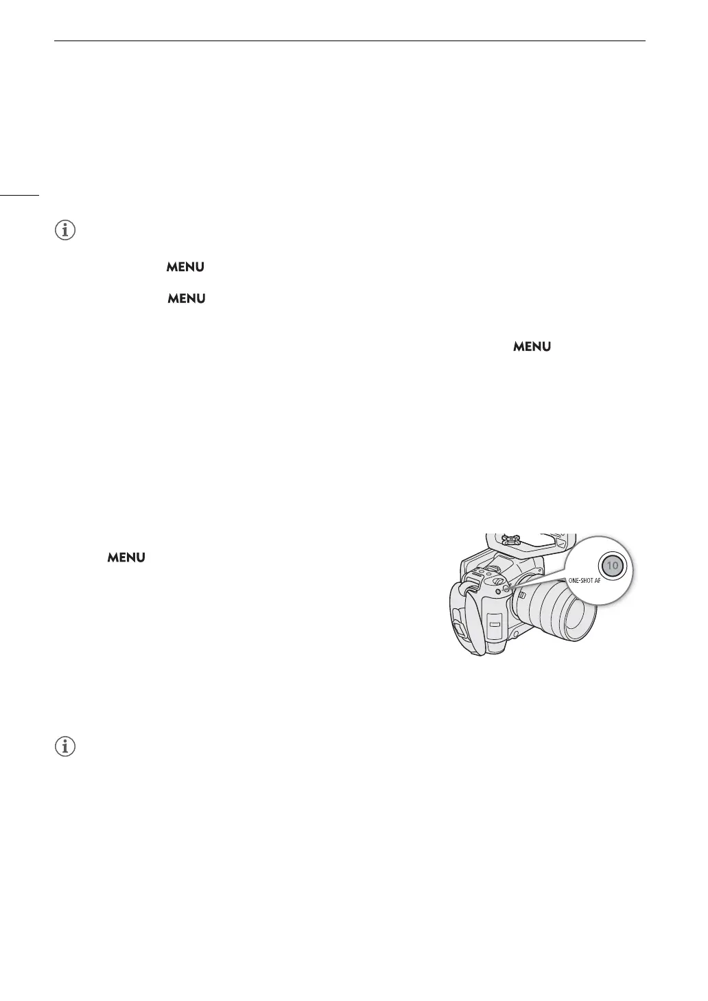 • One-shot AF will not work when Face AF is set to [Face Only] and a face has not been detected.