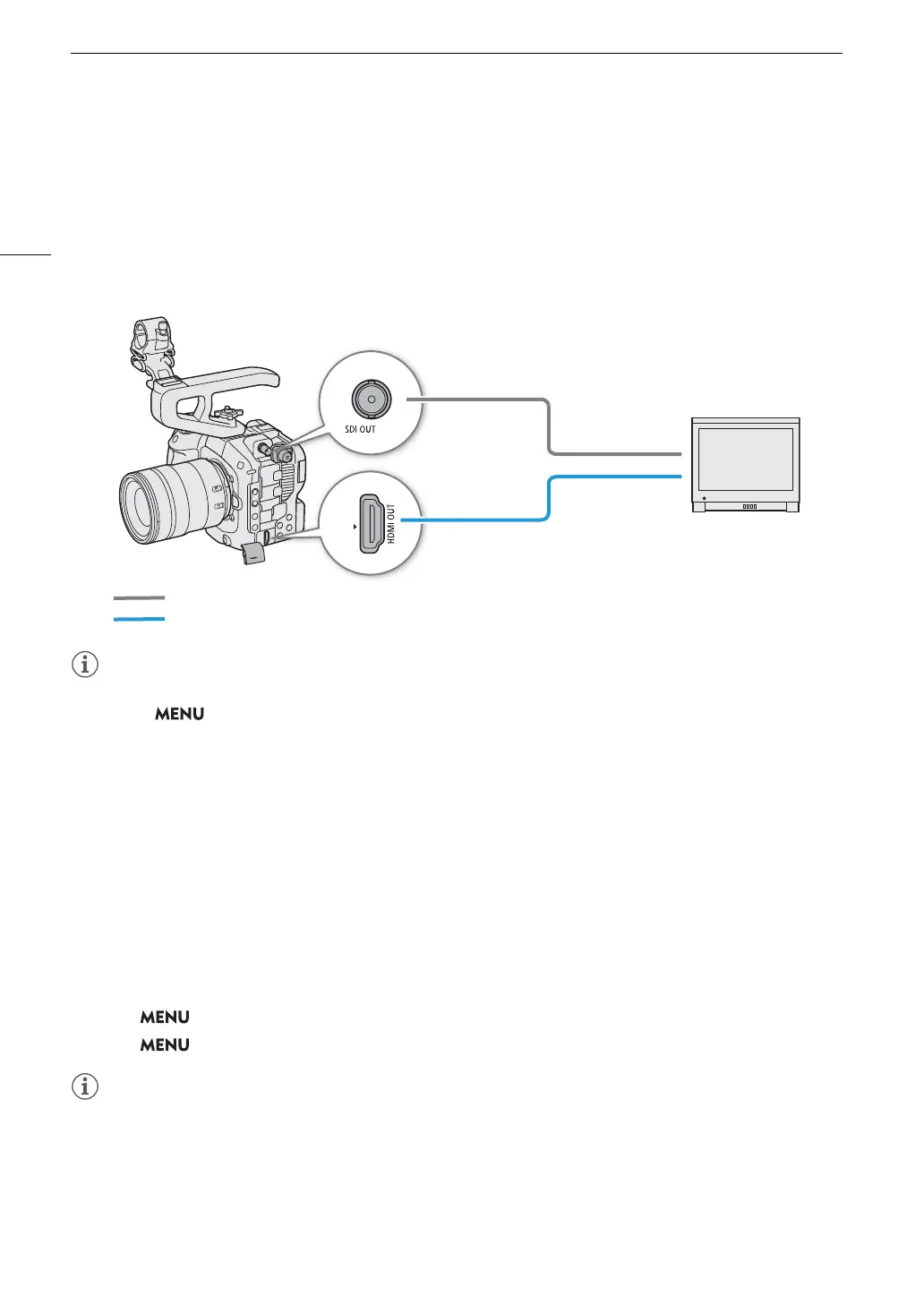 an external video recorder (for recording), adjust the required settings in the menu. For details about output