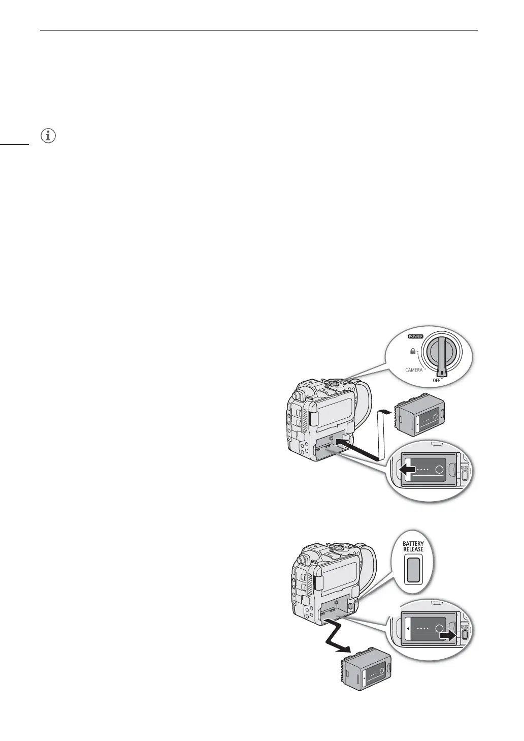 • Charged batteries continue to discharge naturally. Therefore, charge them on the day of use, or the day