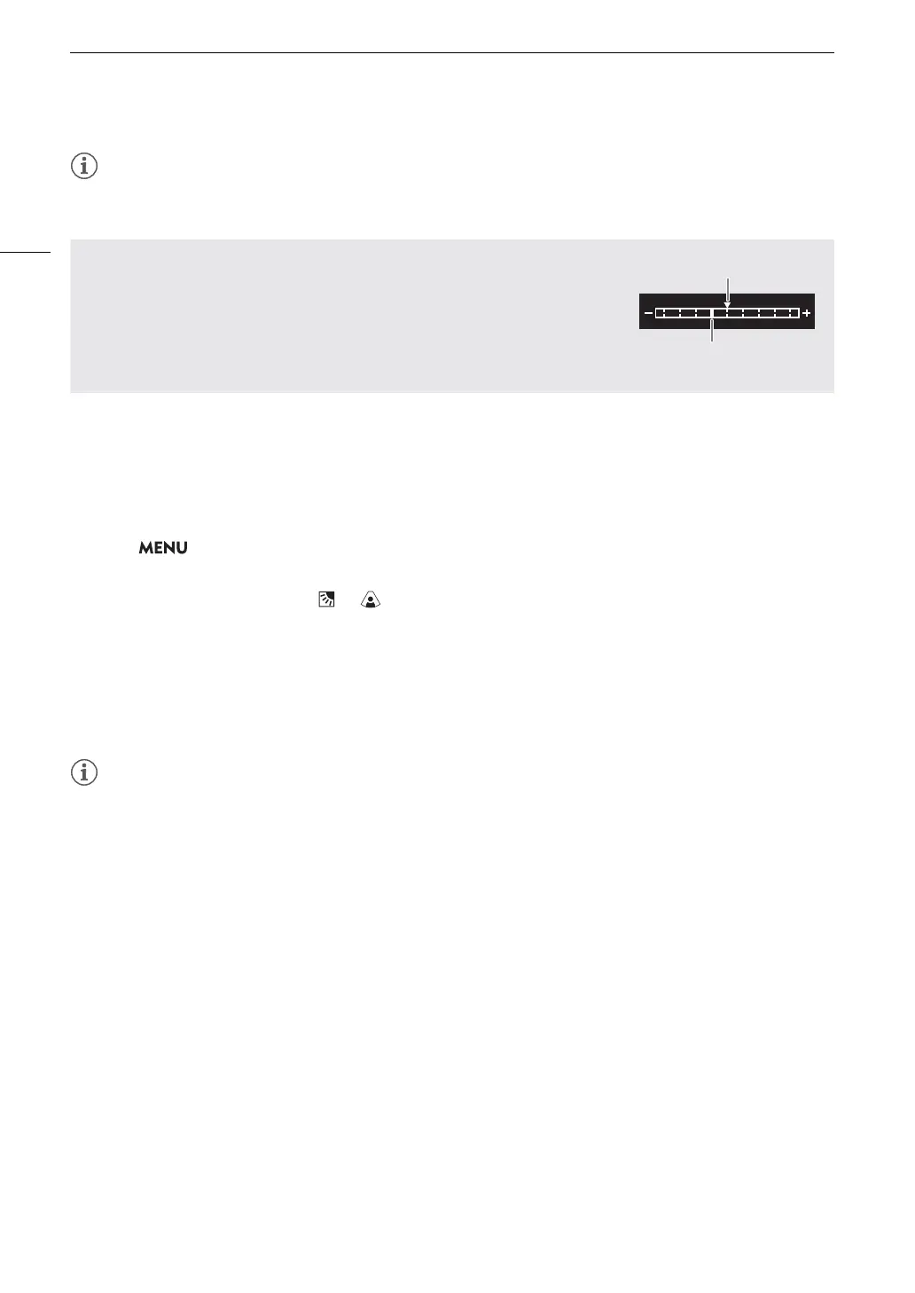 • If you set an assignable button to [AE Shift +] or [AE Shift –] (A 123), you can press the button to adjust the