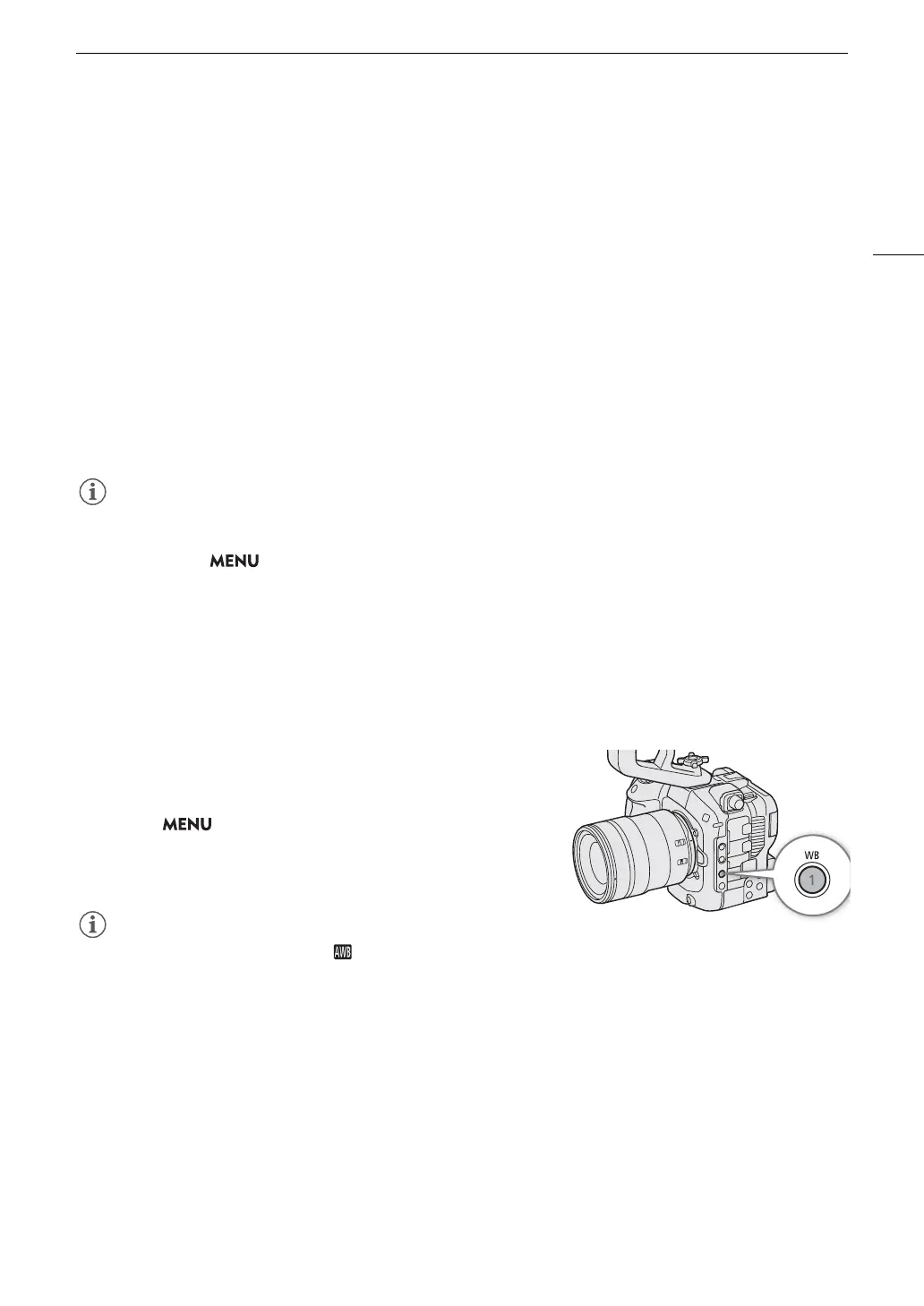 balance mode temporarily. Press the button again to return to the previous white balance mode.