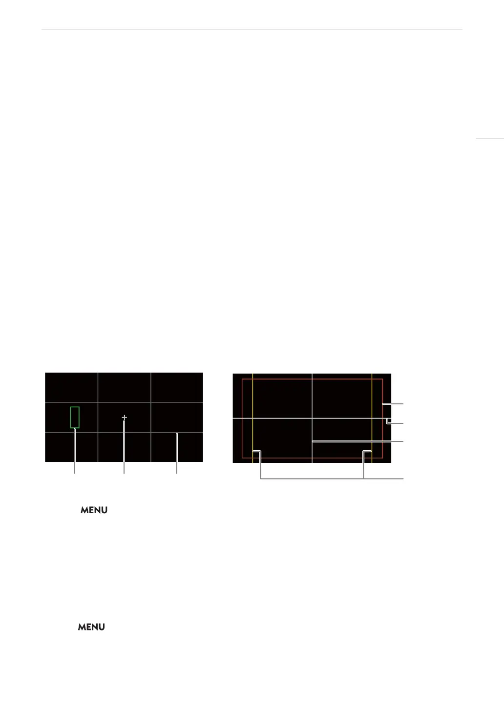 • If the respective setting is set to [Off], onscreen markers will not be displayed on the corresponding video