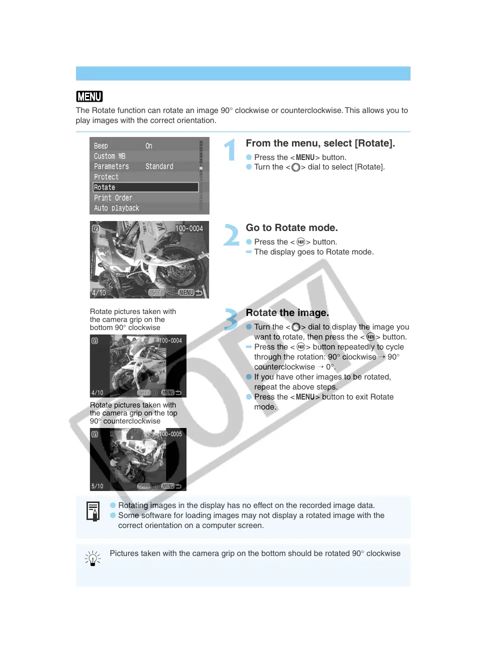 Pictures taken with the camera grip on the bottom should be rotated 90° clockwise