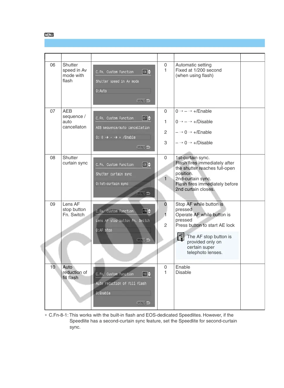 ∗ C.Fn-8-1: This works with the built-in flash and EOS-dedicated Speedlites. However, if the