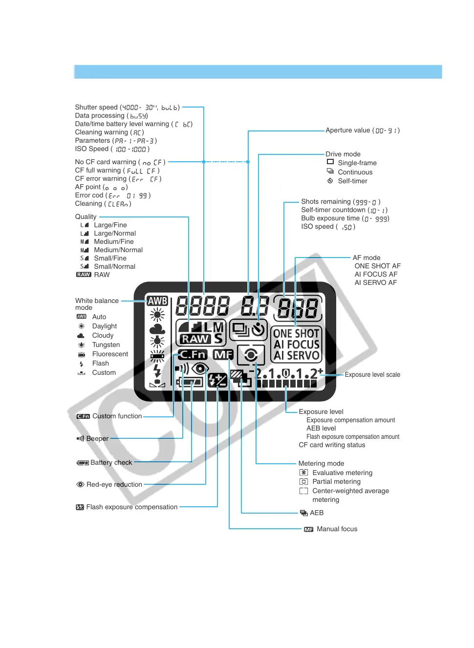 The above diagram shows the LCD panel with all icons and indicators displayed. In actual