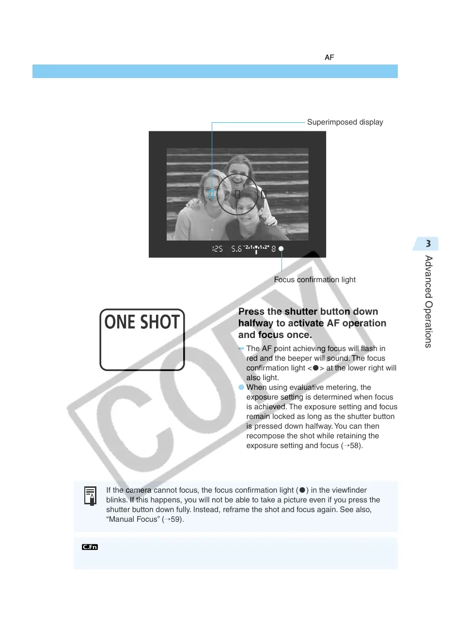 If the camera cannot focus, the focus confirmation light (● ) in the viewfinder