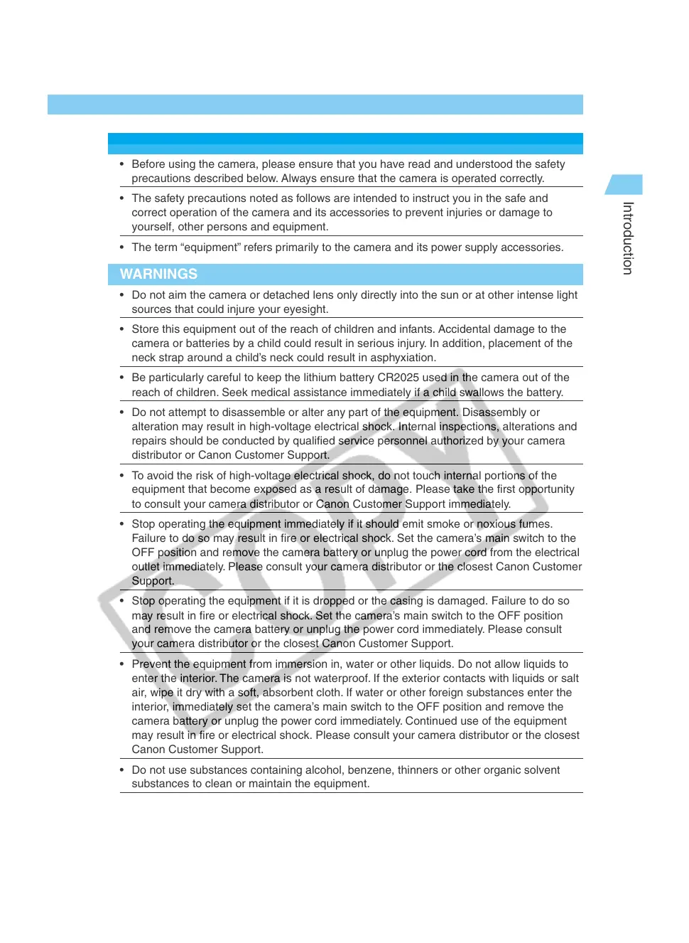to consult your camera distributor or Canon Customer Support immediately.