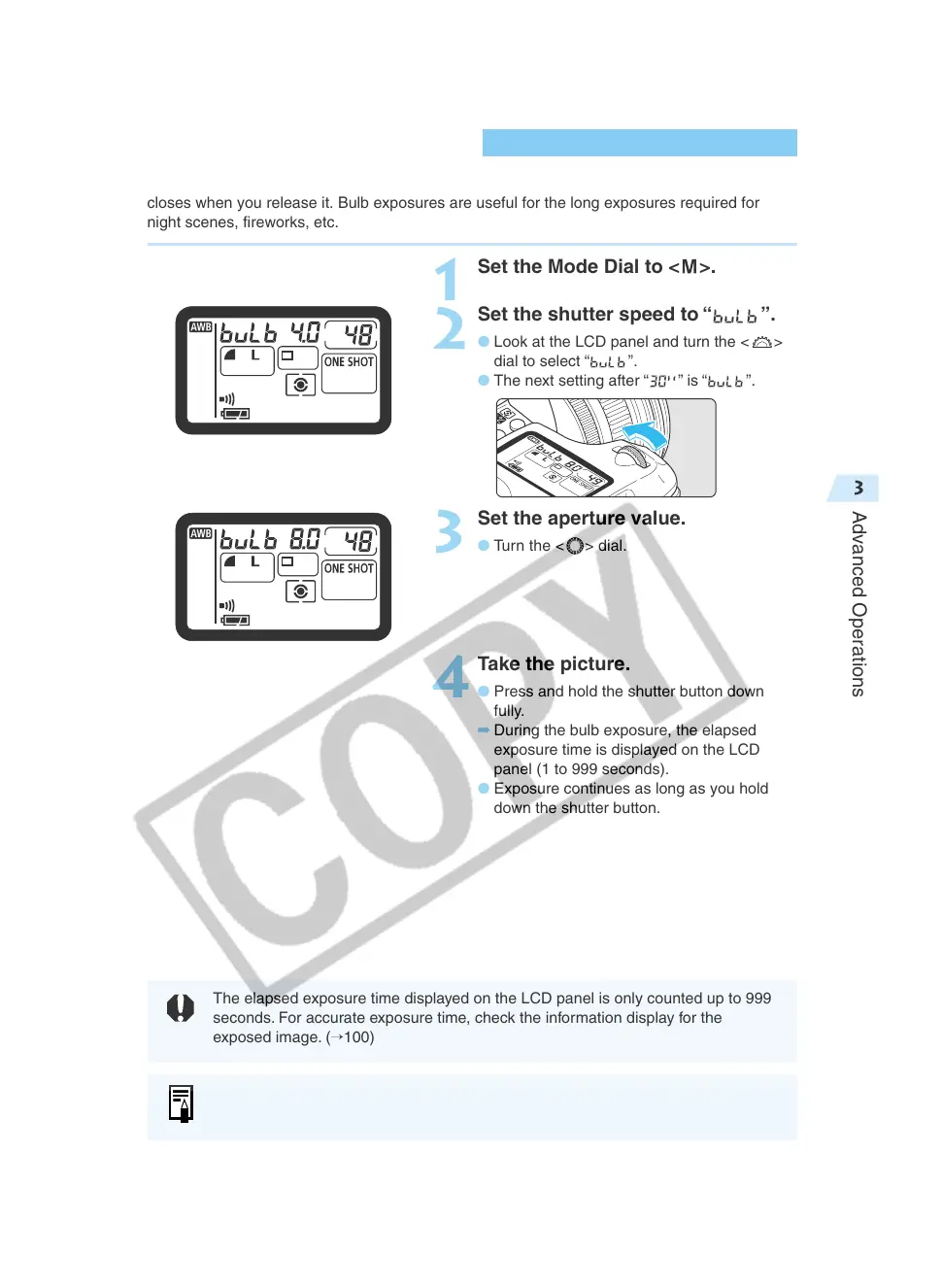 The elapsed exposure time displayed on the LCD panel is only counted up to 999