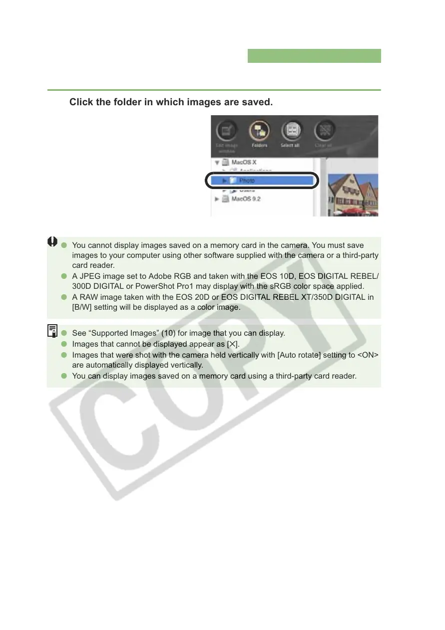 O You can display images saved on a memory card using a third-party card reader.