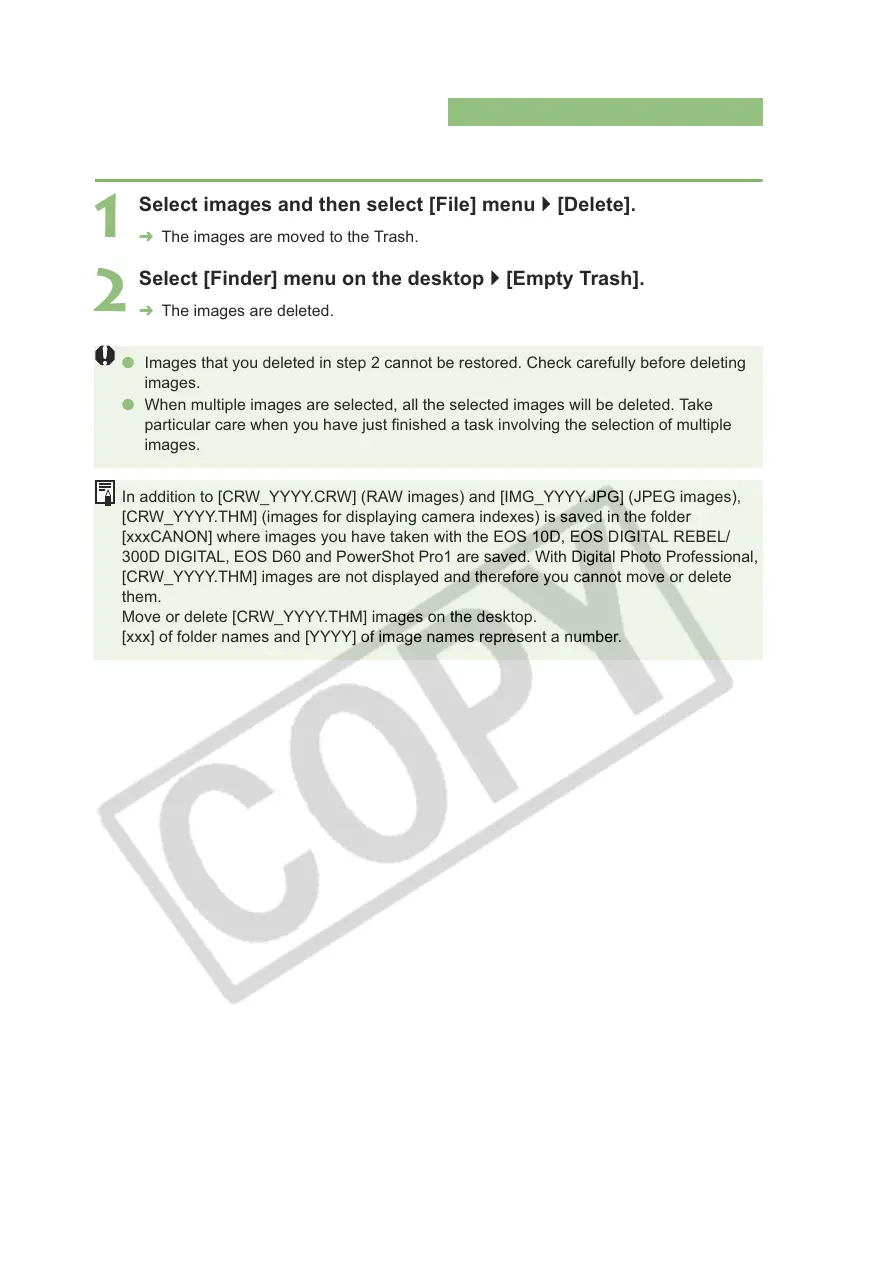 O Images that you deleted in step 2 cannot be restored. Check carefully before deleting