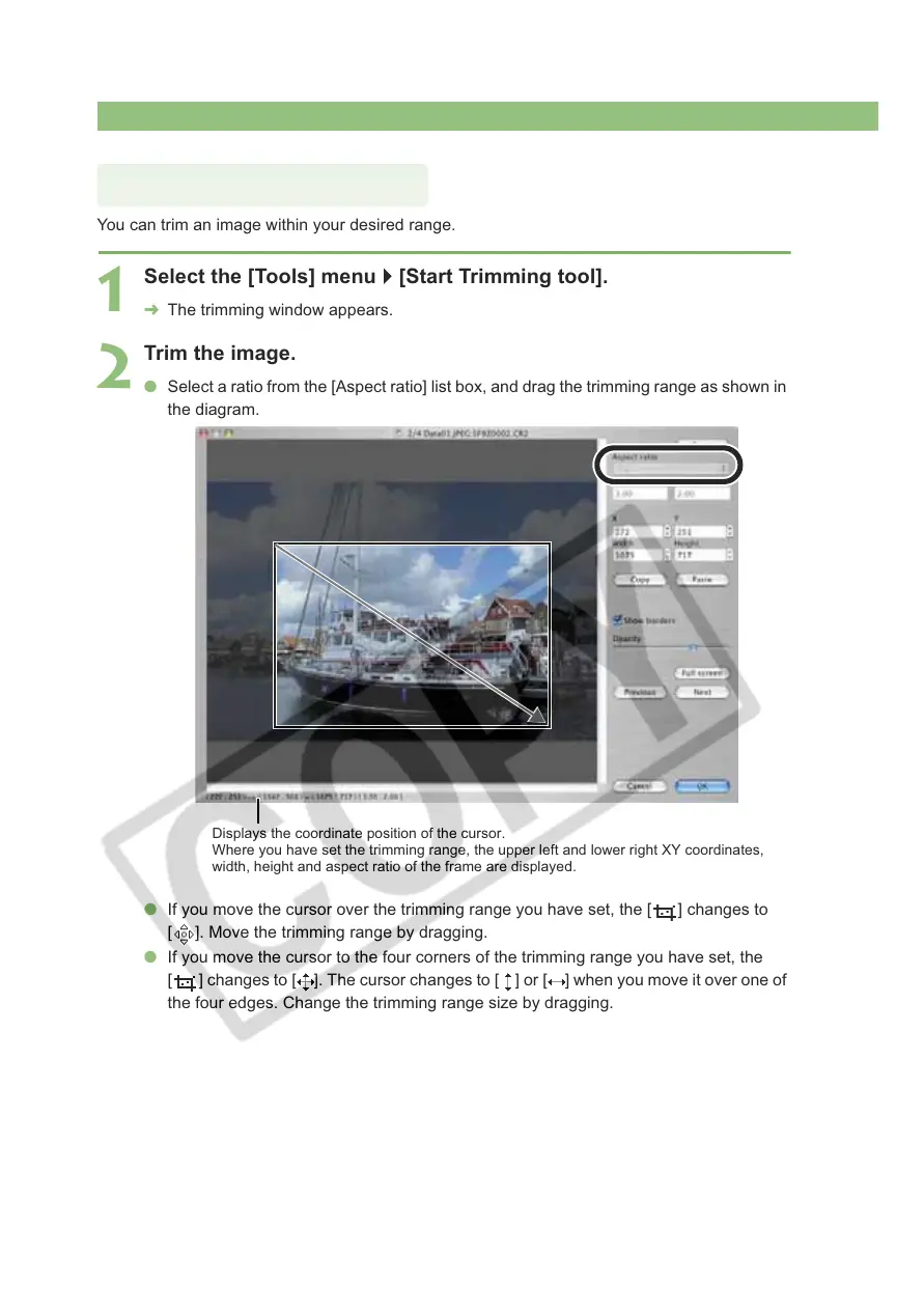 the four edges. Change the trimming range size by dragging.