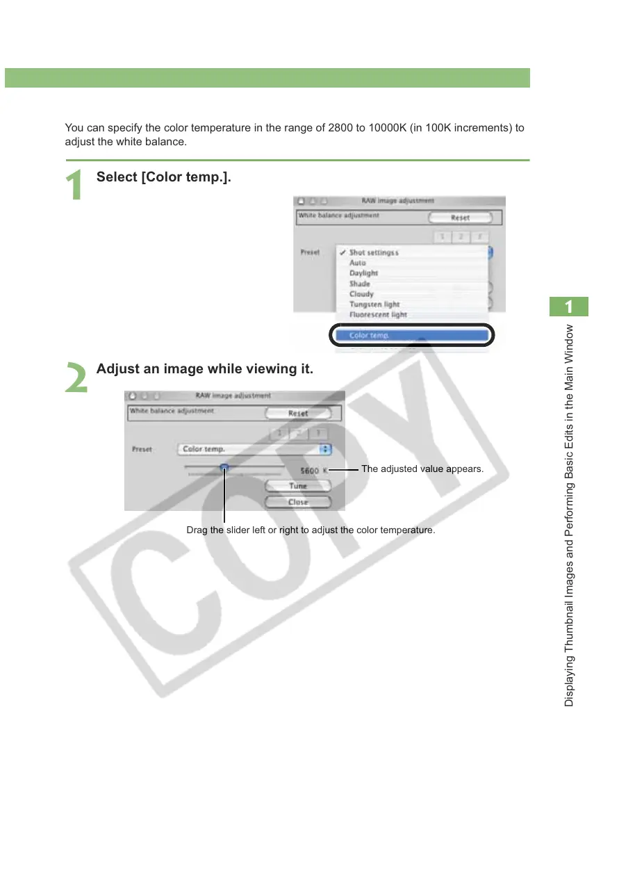 You can specify the color temperature in the range of 2800 to 10000K (in 100K increments) to