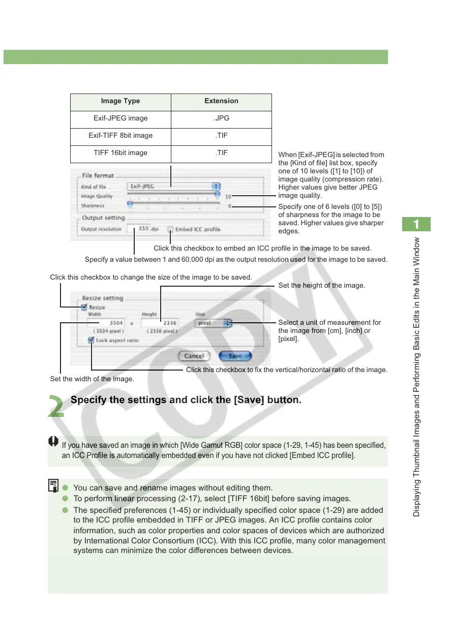 to the ICC profile embedded in TIFF or JPEG images. An ICC profile contains color