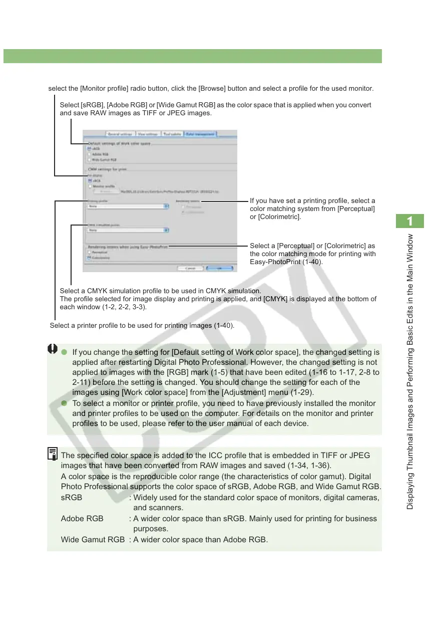 images using [Work color space] from the [Adjustment] menu (1-29).