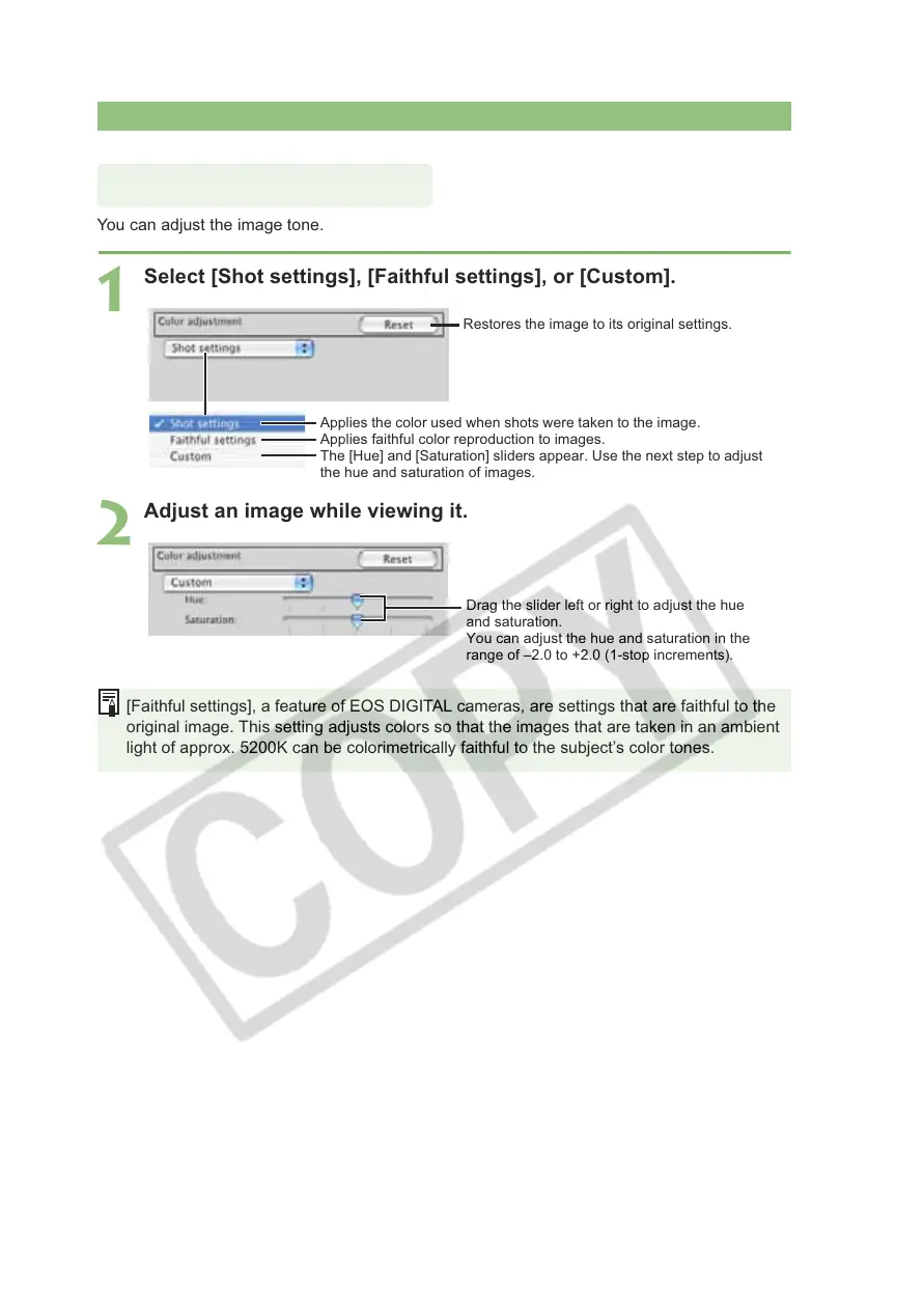 [Faithful settings], a feature of EOS DIGITAL cameras, are settings that are faithful to the