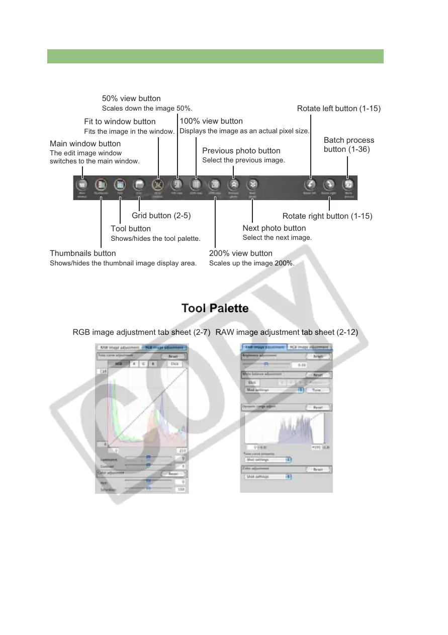 RGB image adjustment tab sheet (2-7) RAW image adjustment tab sheet (2-12)
