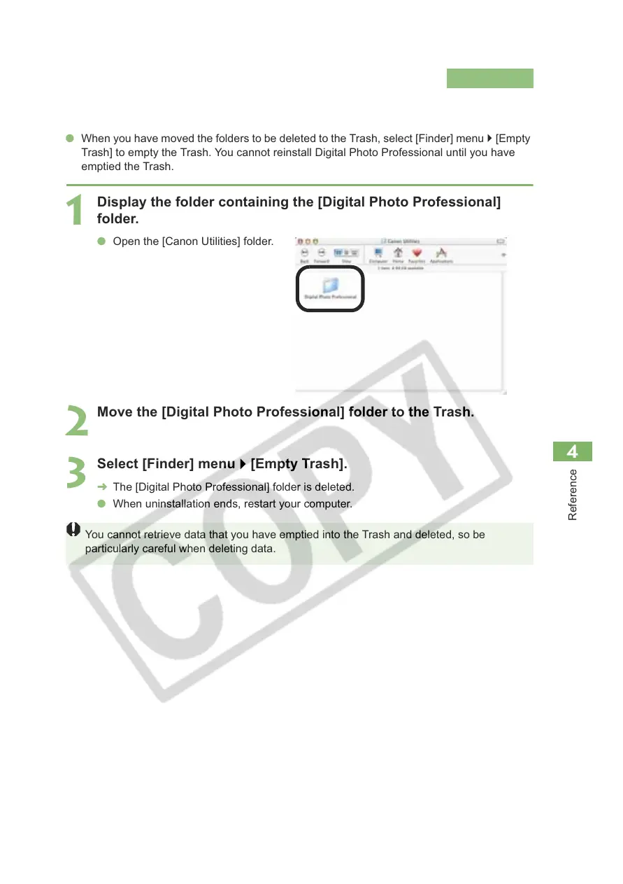 Trash] to empty the Trash. You cannot reinstall Digital Photo Professional until you have