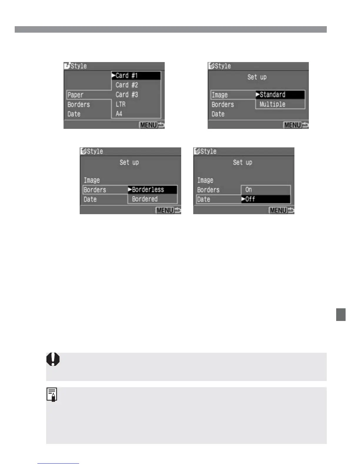 able to set [Borders] and [Date]. The print will be borderless without any